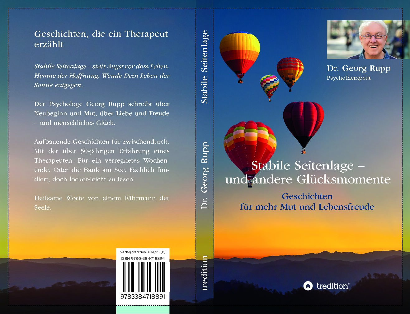 Der Psychologe Dr. Georg Rupp schreibt aufbauende und unterhaltsame Geschichten mit der über 50-jährigen Erfahrung eines Therapeuten. In manchen Anekdoten wirst Du Dich selber finden. In allen ein Stück Lebensfreude entdecken. Oder das Staunen üben. Und Dankbarkeit erfahren. Immer mit psychologischen Hintergründen und therapeutischen Ideen für ein gutes Leben im Gepäck. Hier liest Du, wie Menschen ihre alten Lasten aufgelöst und einen Neustart begonnen haben. Wie Steffi ihr Leben wieder liebenswert machte. Und wie Maria selbstbewusster wurde. Auch, was an einem Abend in Schwabing geschah, als der Sänger …Am Ende kannst Du jede Geschichte in Ruhe nachwirken lassen. Vielleicht ganz entspannt in einer stabilen Seitenlage. Dann können auch gute Gedanken entstehen, die Dich weiterbringen. Zum Glück.Herzlich willkommen im Buch!